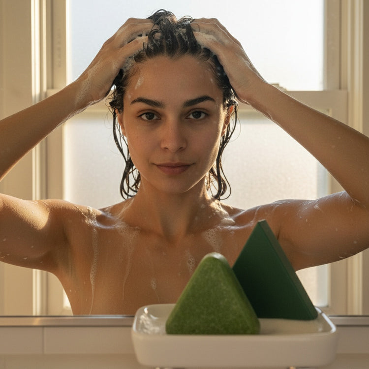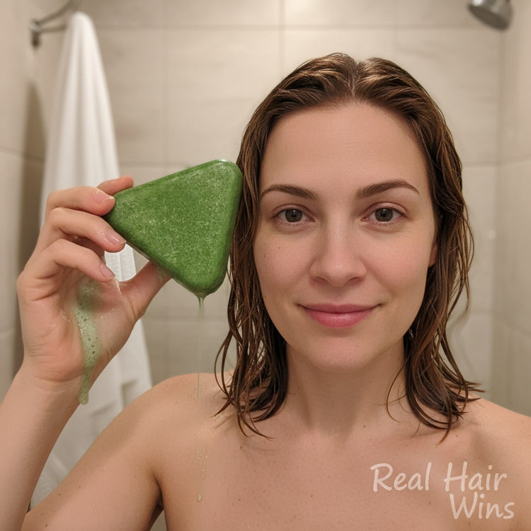 Swipe through to witness real results from our SEVEN GREEN™ shampoo bar. From limp strands to voluminous locks, see how our herbal blend revitalizes every hair follicle.